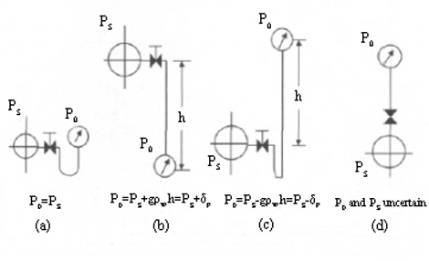 For state (c), the pressure sensor is above the pressure tapping point. If the pressure pipe is fully vented and the pressure pipe is filled with condensate, the effect on the sensor is -gρwh. For the state (d), since the height of the condensate in the pressure guiding tube is difficult to determine, it is difficult to determine how low the output value of the pressure sensor it is. Therefore, this method should not be used.